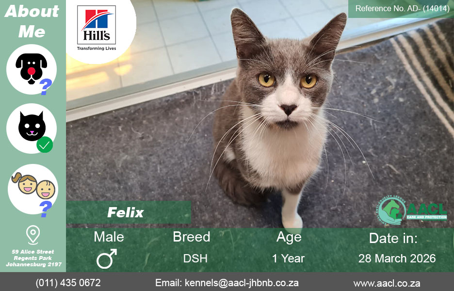 Felix Gallery Felix Cats for Adoption in Johannesburg Felix AD- (14014) Admin2026-04-22T14:11:55+02:00 Read More