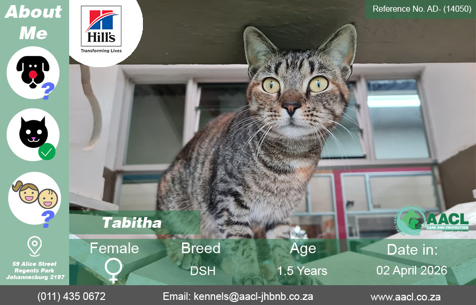 Tabitha Gallery Tabitha Cats for Adoption in Johannesburg Tabitha AD- (14050) Admin2026-04-23T12:38:01+02:00 Read More